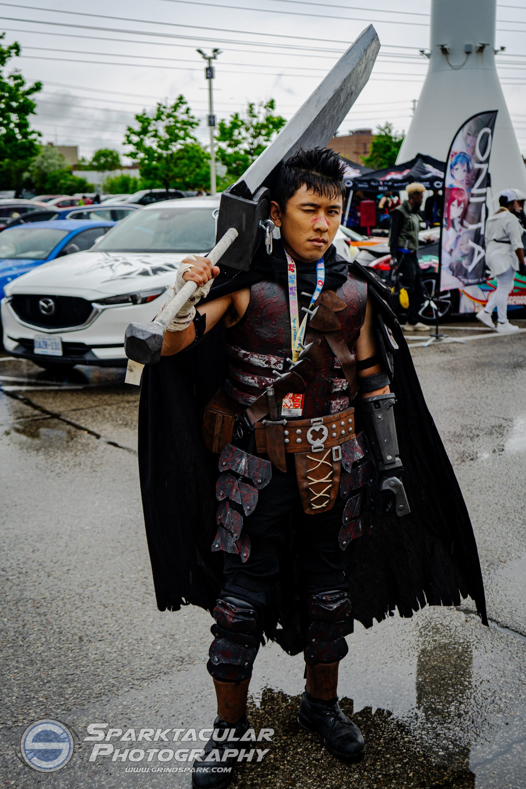 The Black Swordsman commeth in this moody & rainy photo from Anime North 2024.